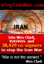 Wes Clark and VoteVets.org petition to President Bush: urge him to work with our allies and use every diplomatic, political, and economic option at our disposal to deal with Iran. War is not the answer.