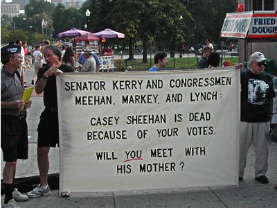 We must call to account not only the administration that misled this nation into war, but also the members of Congress in both parties who failed to stand up to them. When their country needed them most, they failed to answer the call—unlike the troops they send. On August 13, in 100-degree heat and humidity, crowds gathered on Boston Common in support of Cindy Sheehan and Gold Star Families for Peace, with a banner that asked: